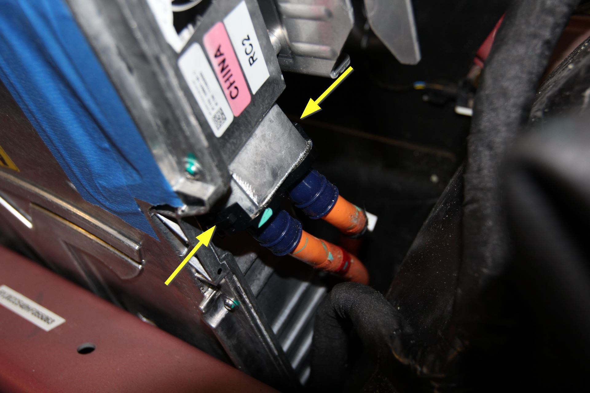 - Release the clips that attach the HV harness to the LV rapid mate and set the LV rapid mate aside.