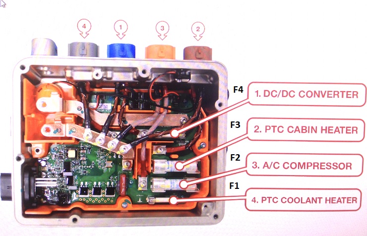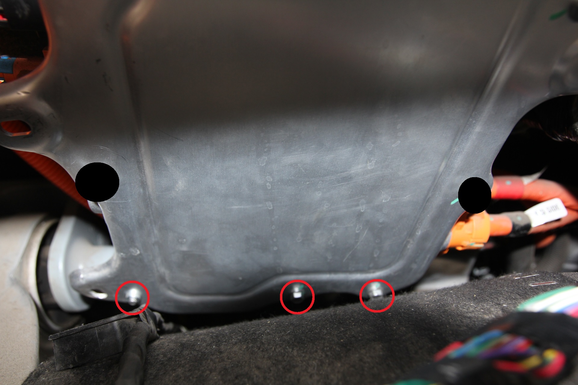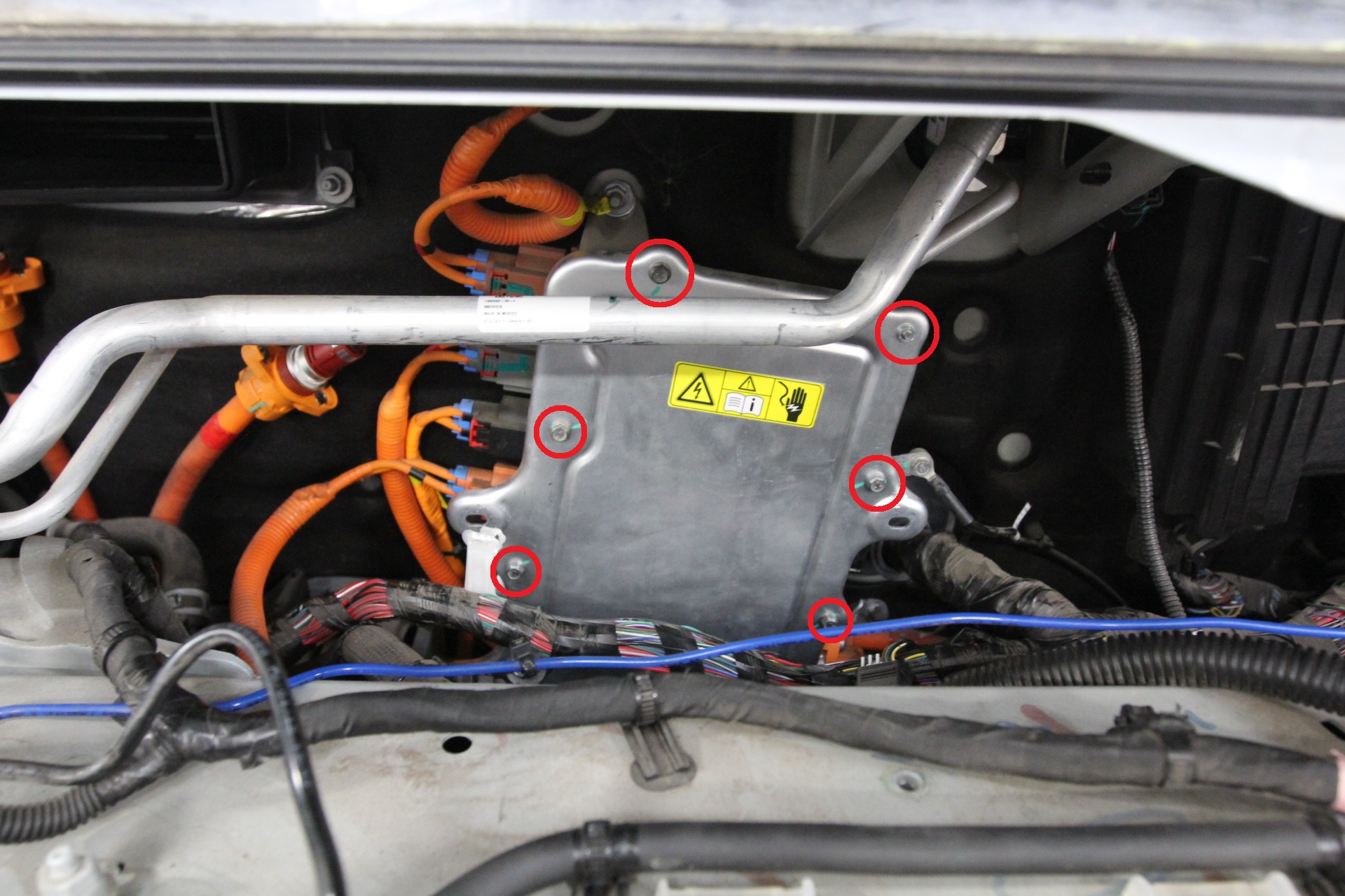Remove the screws (x4) that attach the HV cables to the RH side of the forward junction box.
