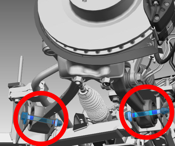 - On each side of the vehicle, remove the bolt that attaches the strut to the aft lower link (torque 140 Nm).