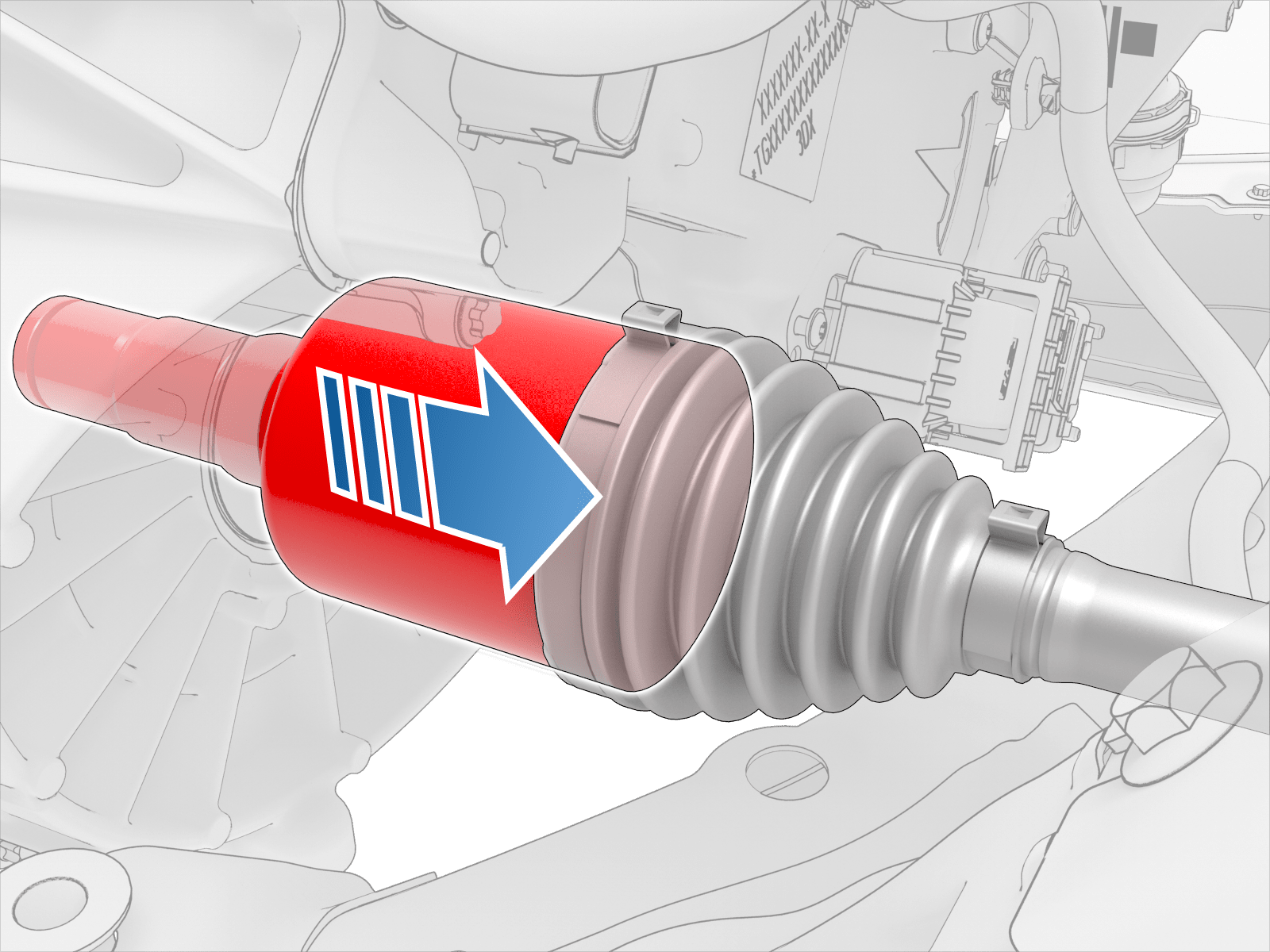 - Carefully push the halfshaft into the drive unit until there is an audible "click" from the halfshaft stub contacting the pinion shaft.