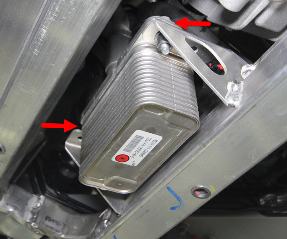 - Remove the bolts (x2) that attach the chiller to the subframe (torque 12 Nm).