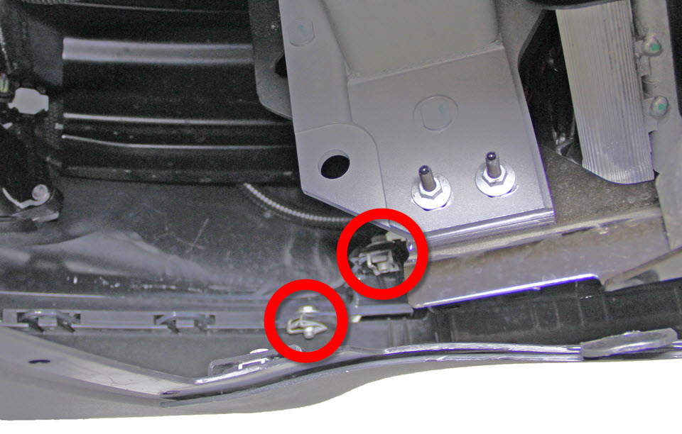 - Remove the 4 bolts and 6 clips that secure the lower front fascia to the front fascia, and then remove the lower front fascia.