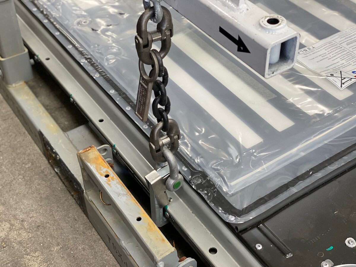NoteUse caution to align the HV battery into the crate and not damage the battery.