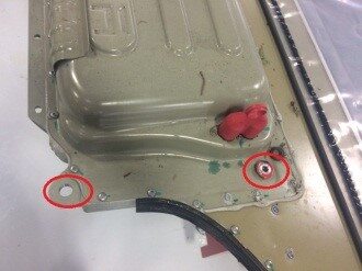 (x2) that attach the HV battery to the body with a battery powered drill.
