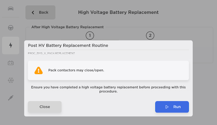 - In the High Voltage Battery Replacement window, under After High Voltage Battery Replacement, touch High Voltage Battery Replacement Routine, in the window that opens, touch Run, and then wait for completion.