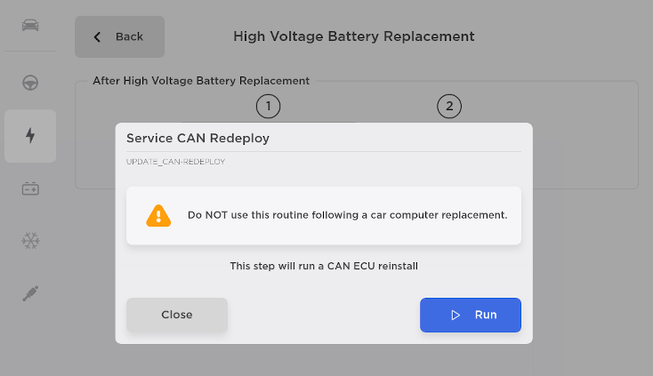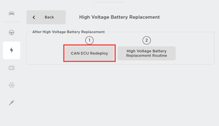 - Under After High Voltage Battery Replacement, touch CAN ECU Redeploy, in the window that opens, touch Run, and then wait for completion.