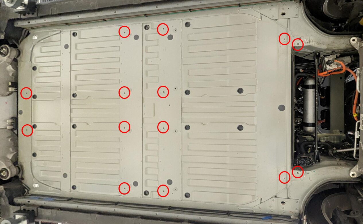 (x8) that attach the HV battery to the body with a battery powered drill.