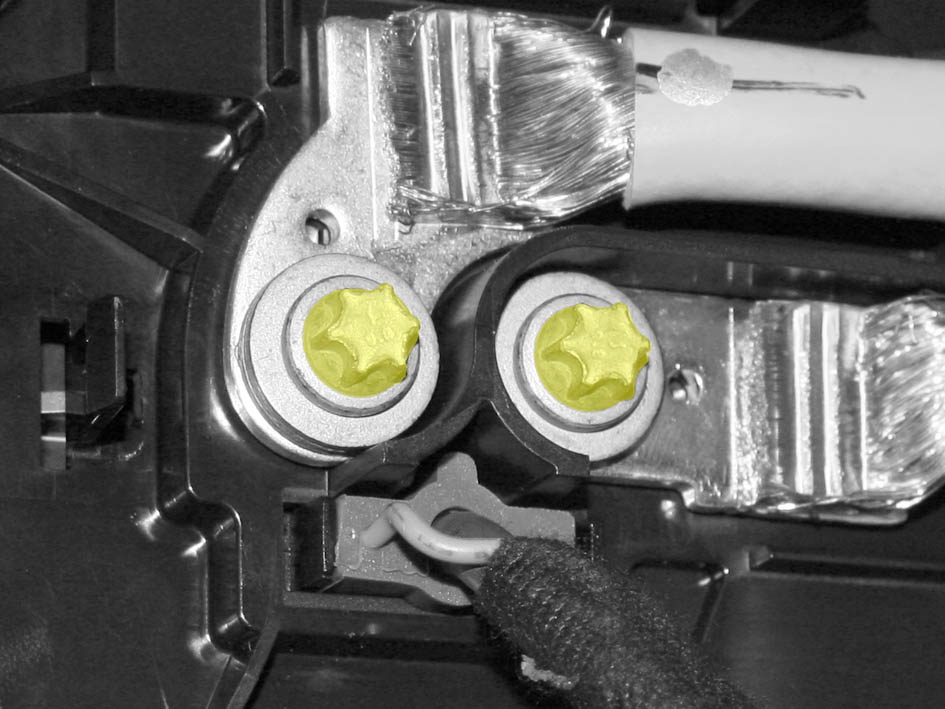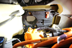 - Use a flathead screwdriver to release both HV inlet seals from the tabs on the charger inlets.