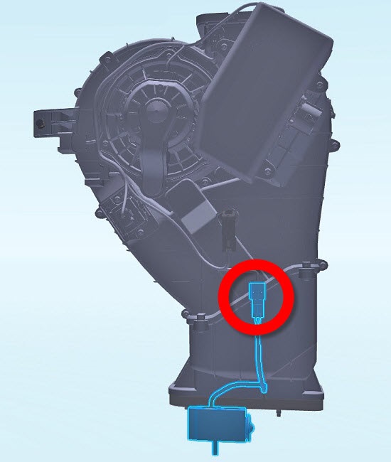 - Release the clips (x2) that attach the rear TXV electrical harness to the side of the rear HVAC assembly.