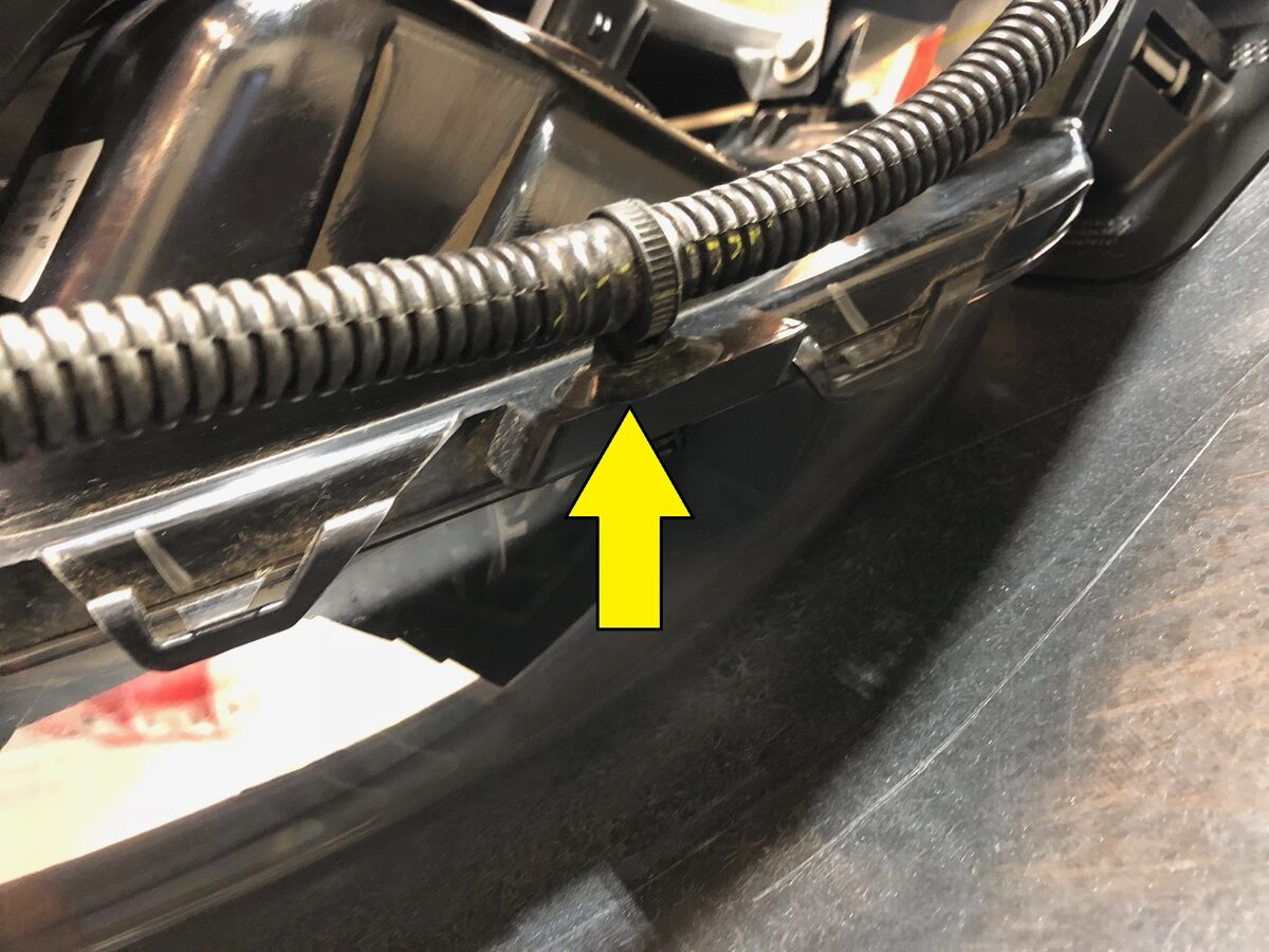 securing front fascia harness on the LH fascia lamp assembly