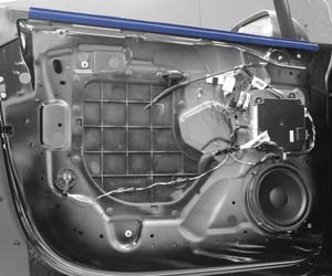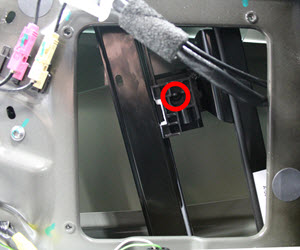 - Using the window switch tool, raise the regulator for access to the front clip.