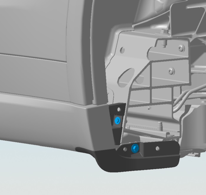 - Remove the bolts that secure the rear of the rocker panel molding to the body (torque 3 Nm).
