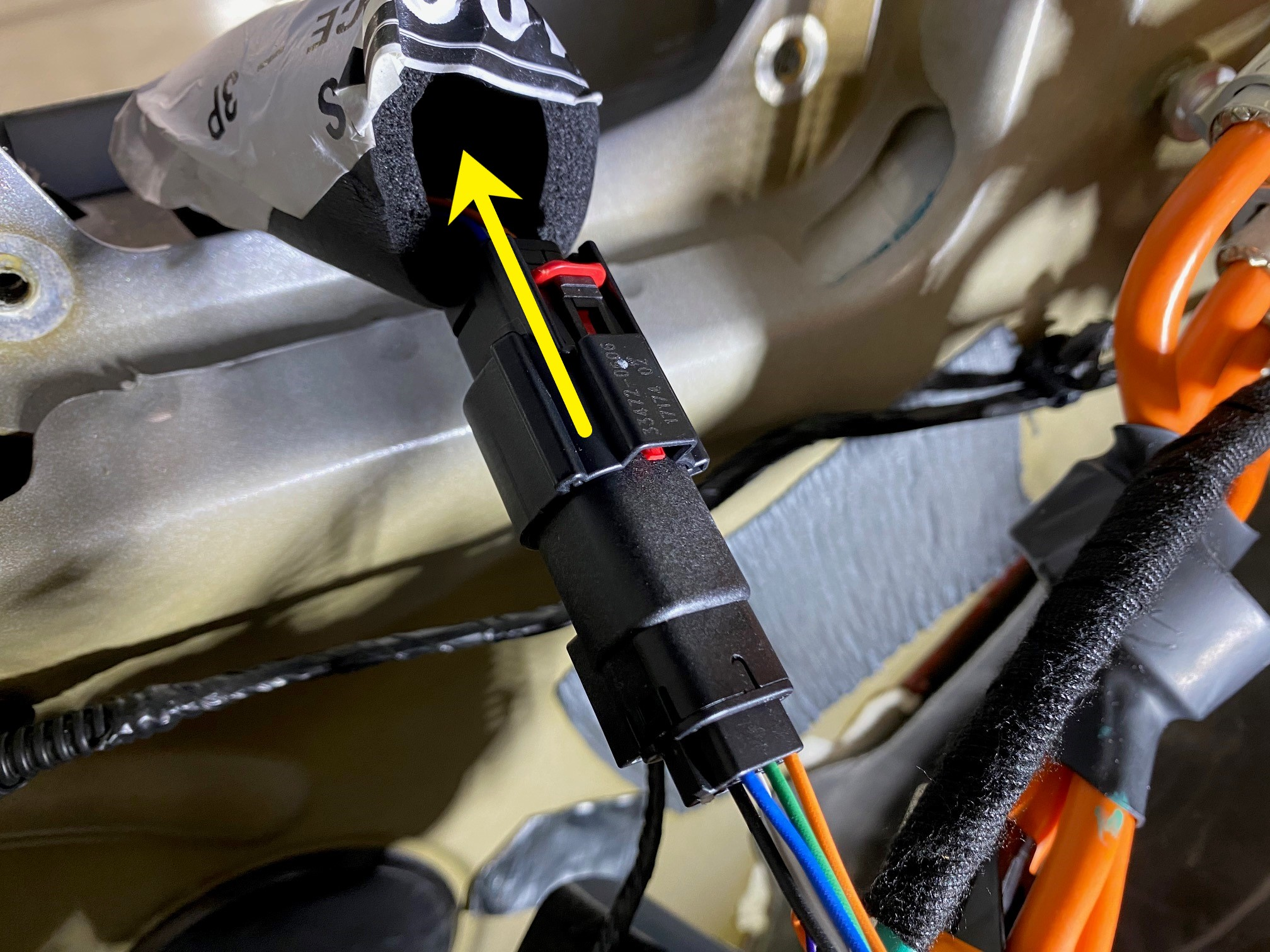 - Remove the bolts (x4) that secure the ECE charge port assembly to the body (torque 5 Nm), and then remove the ECE charge port assembly.