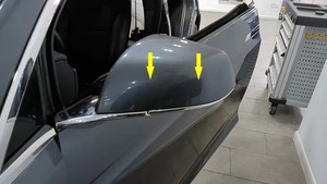 - Install the LH door mirror cover, and then press down to fasten the tabs that attach the cover to the mirror.