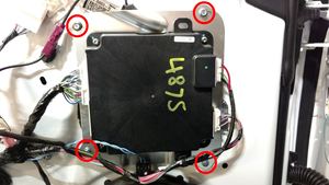 - Position the module bracket, route the harness and then install new bolts (x4) that attach the bracket to the LH front door.