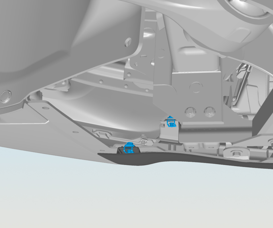 - Release the fasteners that secure the skid plate chin spoiler to the front fascia (torque 3 Nm).