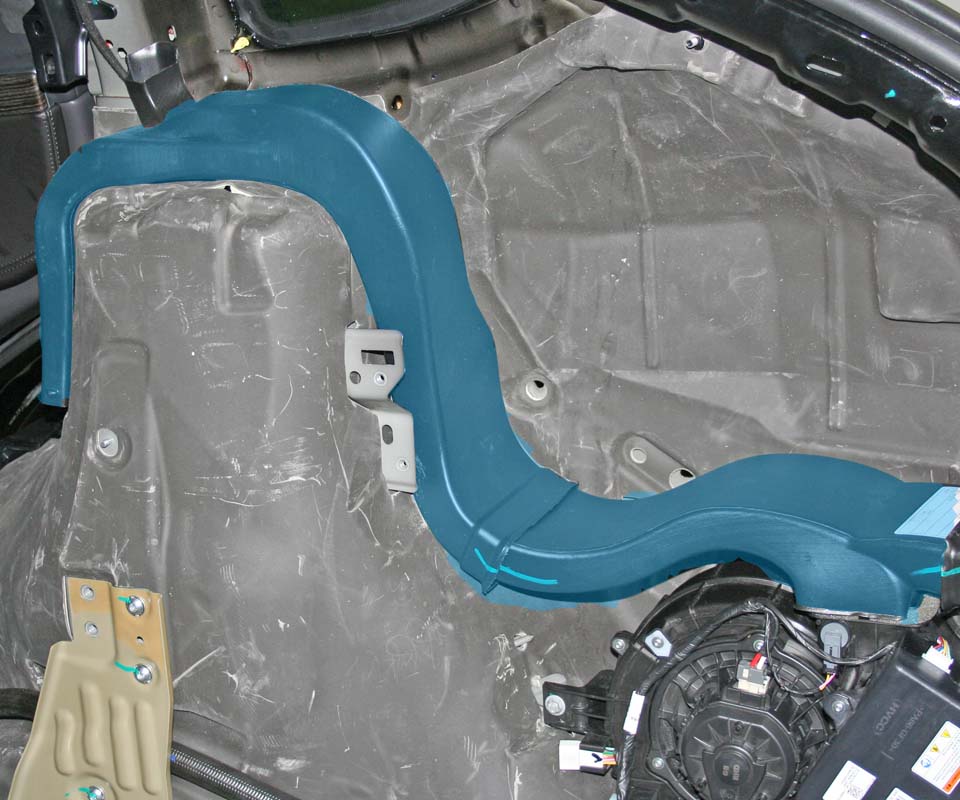 - Release the bolts (x2) that secure the HVAC assembly to the body (torque 6 Nm).