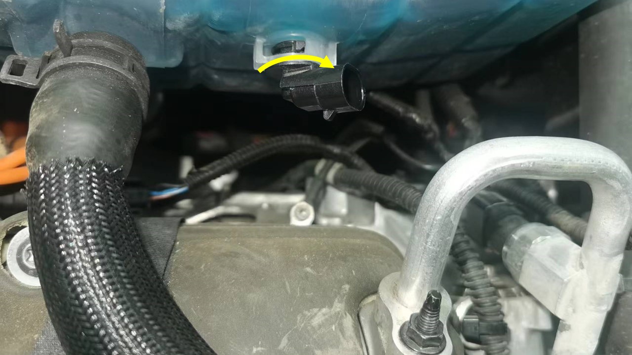 - Install the coolant level sensor assembly by rotating it 90 degree.