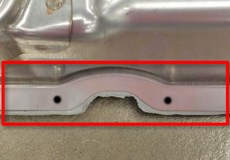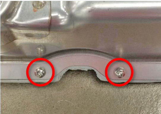 - Remove and discard the screws (x2) that attach the broken aeroshield support tab to the HV battery, and then remove and discard the broken aeroshield tab.