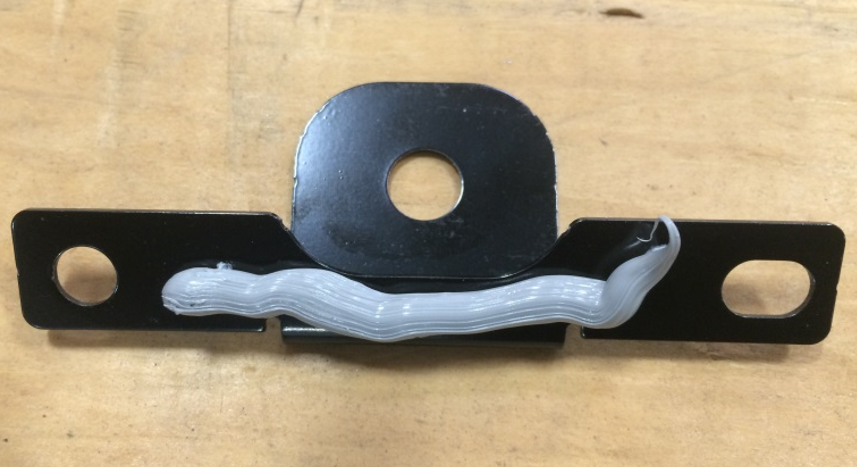 - Apply a bead of ThreeBond 1216E Silicone Sealant along the bottom of the new aeroshield support tab
