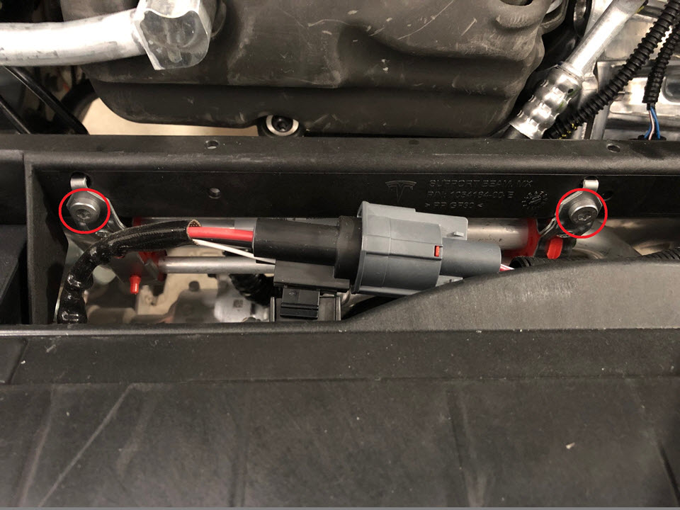 - Remove the bolts (x2) that attach the support beam to the body, and then remove the beam from the vehicle.