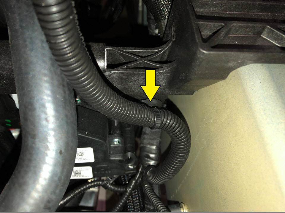 - Remove the fir tree clip that attaches the cooling fan electrical harness to the support beam using a clip pry tool.