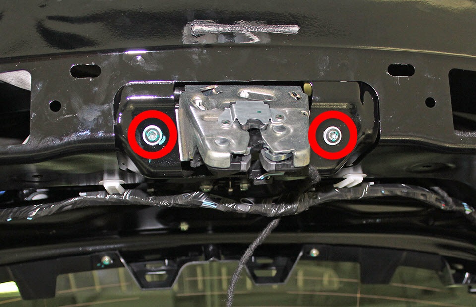 - Remove the screws (x2) that secure the liftgate latch to the liftgate (torque 10 Nm).