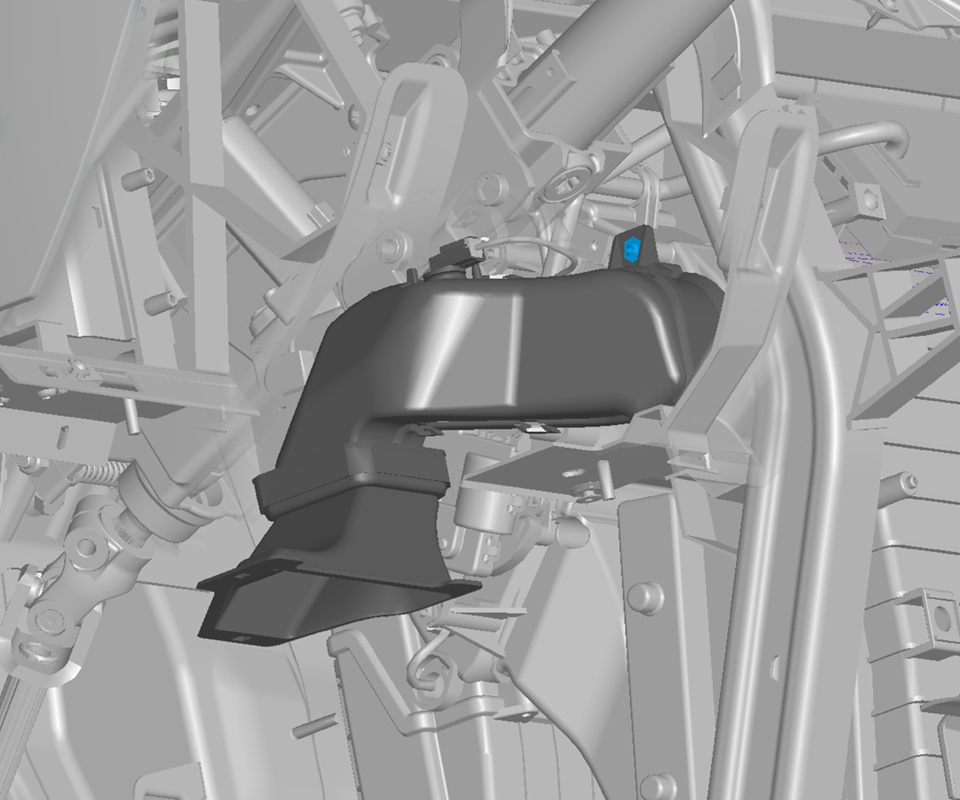 - Remove the screw that attaches the driver side HVAC duct to the front HVAC assembly, and then remove the duct from the vehicle.