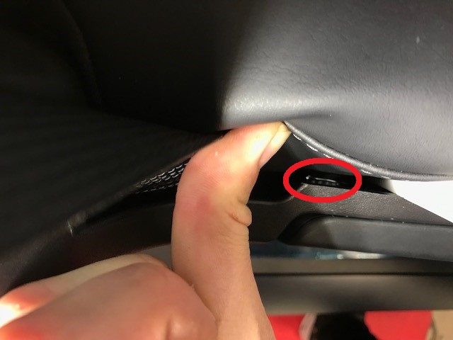 - Push the outer side of the RH seat cushion inward and loosen the spring clip of the seat assembly release handle, and then remove the release handle.