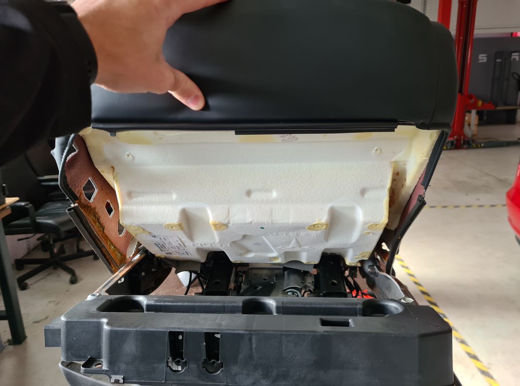 - Remove the cushion trim assembly from the RH rear bench seat.
