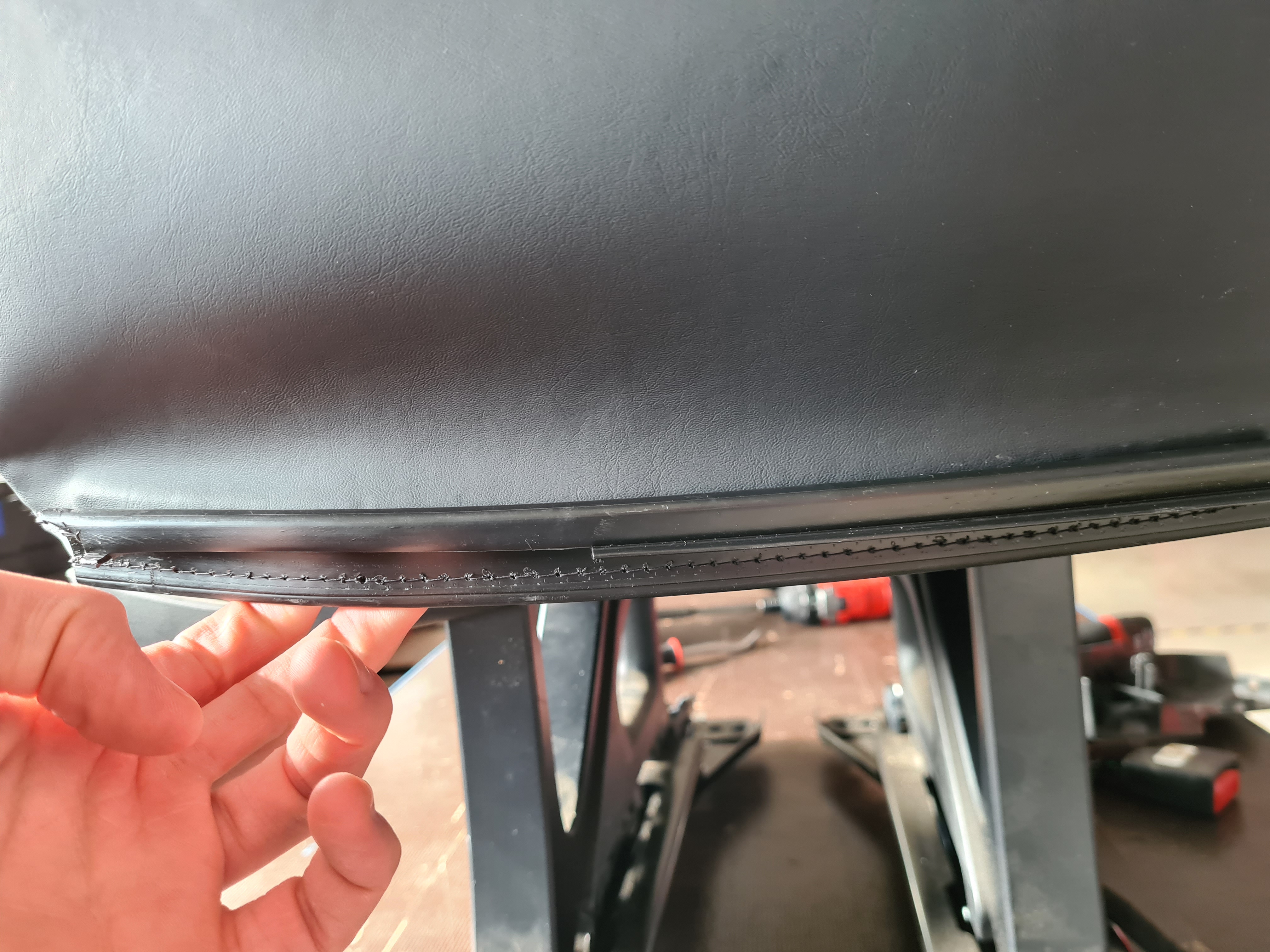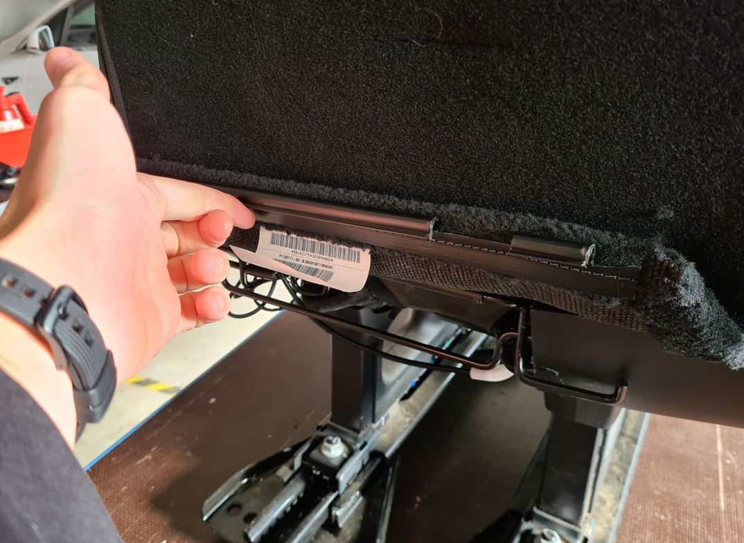 - Loosen the J-hooks (x7) that attach the upholstery to the underside of the bench seat.