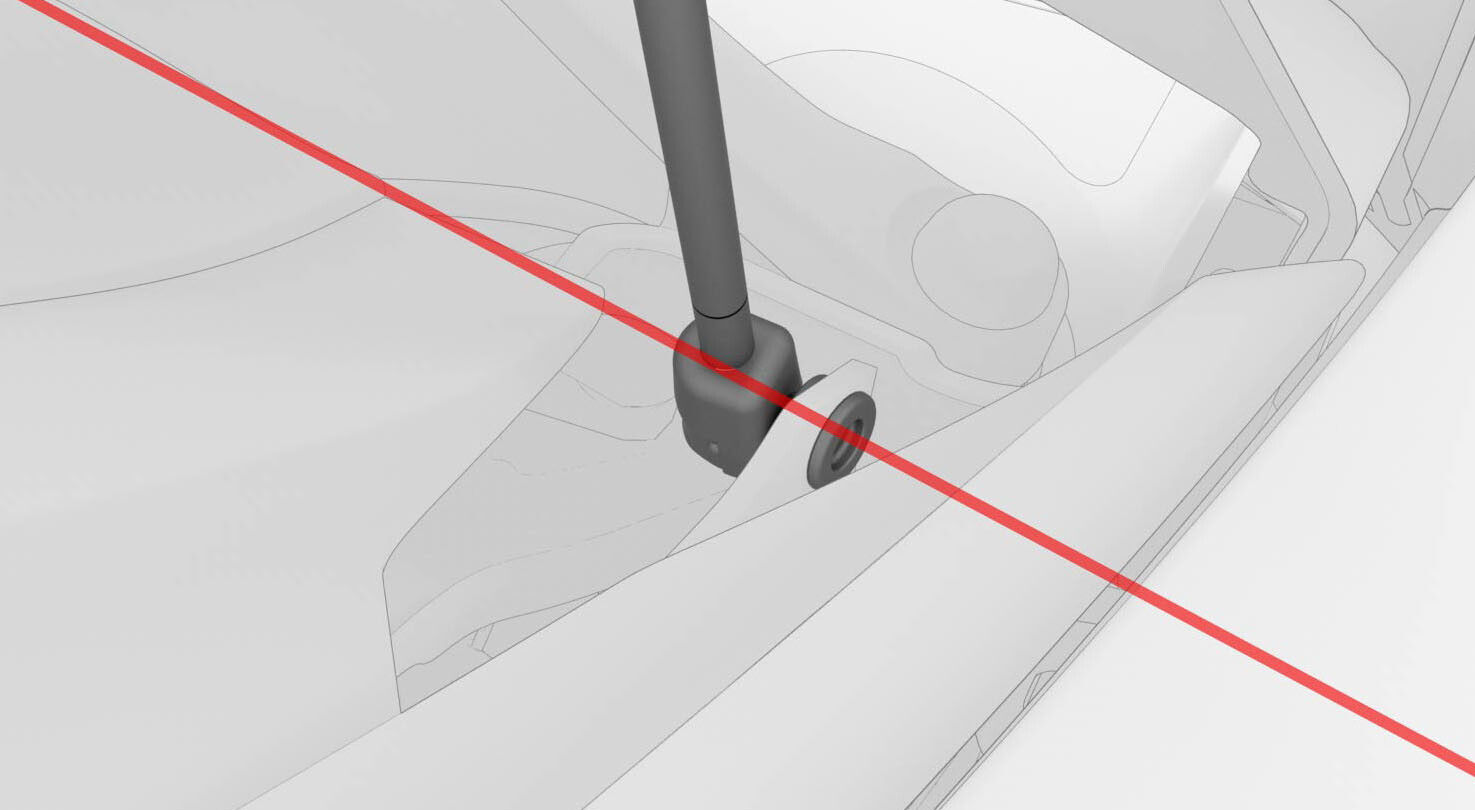- Turn on the alignment laser near the top of the tool, and then rotate the tool as necessary to align the laser with the base of both hood struts.