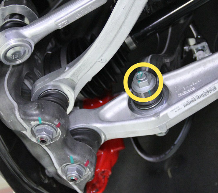 - Raise the vehicle on a 4-post lift and torque all suspension components while the vehicle is at ride height.