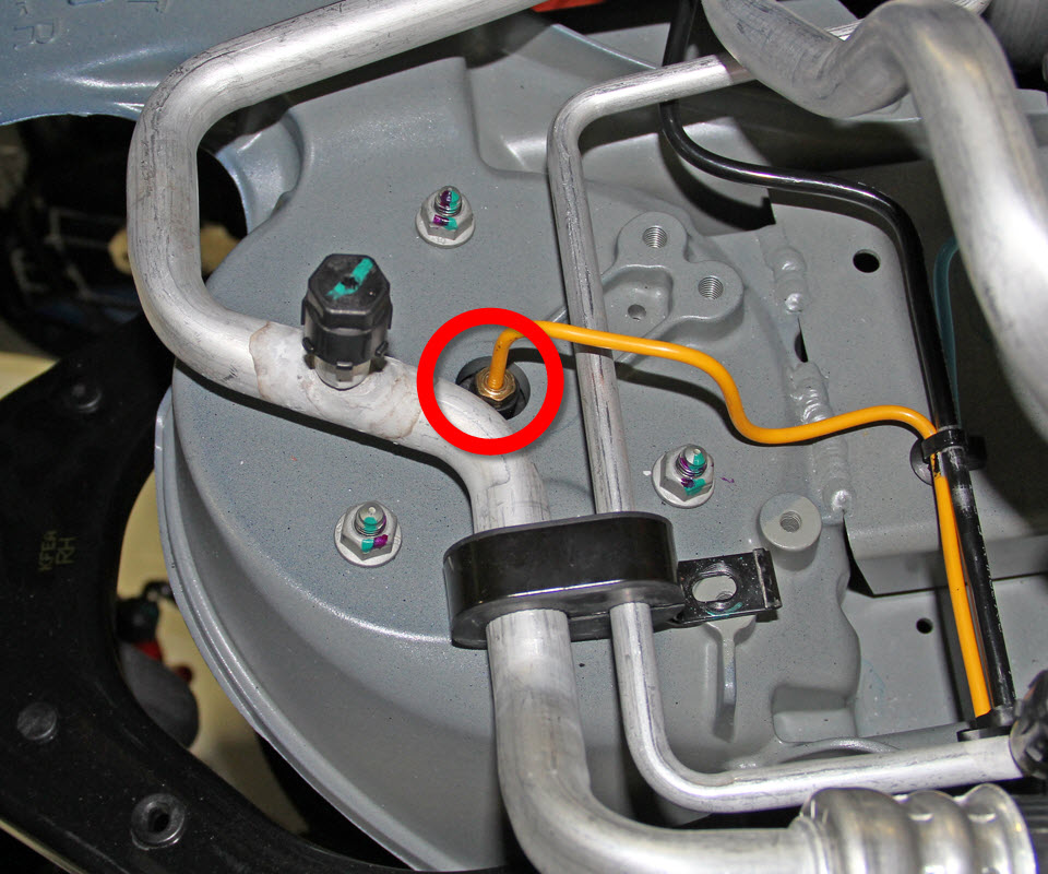 and inspect the vehicle for a Schrader fill valve on the RH shock tower. See