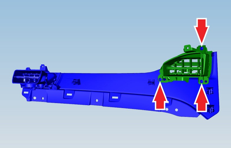 - Remove the screws (x3) that secure the inner face level vent to the instrument panel finisher (torque 1 Nm).