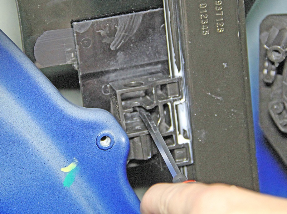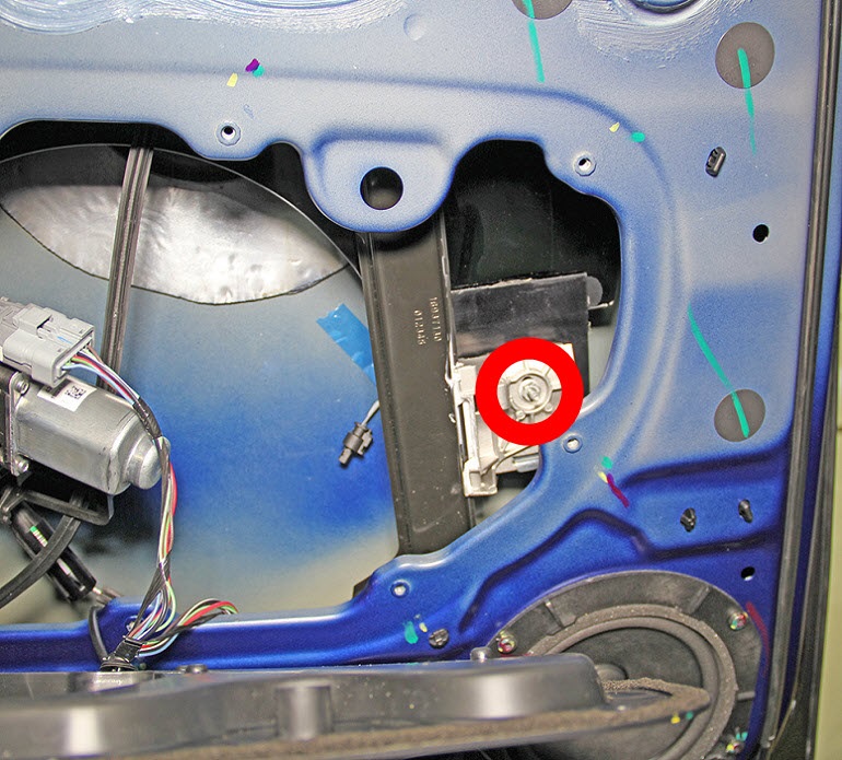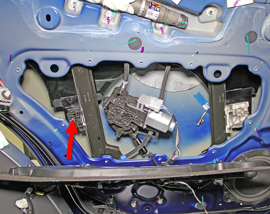 - Use a screwdriver to carefully push in the tab on the regulator to release the rear portion of the window.