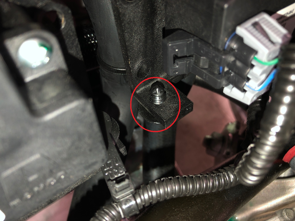 - Remove the clip that attaches the cooling fan harness to the support beam.
