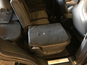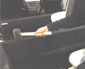 - Roll lift gate carpet back out of the way to access 2nd row rear floor panel