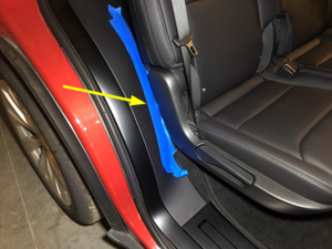 - Tape the RH lower C-pillar area around the 2nd row seat side trim area