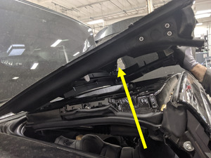 Note17x clips, Align strut cover first, 1x connector may be present on early production vehicles