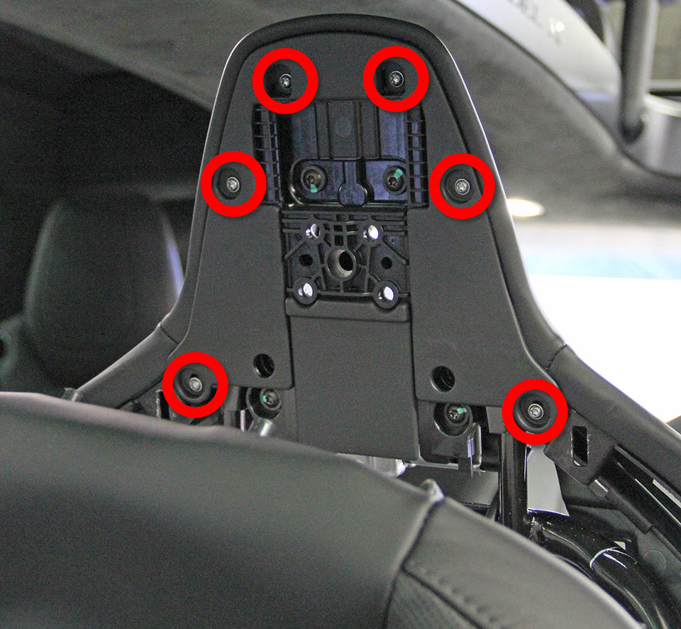 Remove the screws (x6) that secure the headrest frame plate to the seat