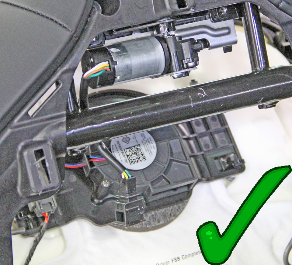 - Ensure that the headrest motor harness is routed in front of the seat frame.