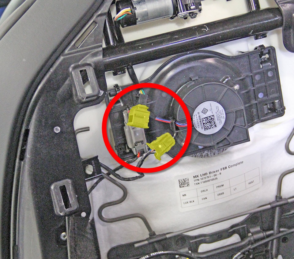 - Use a new cable tie to secure the headrest motor harness to the seat frame. Remove any excess tie.