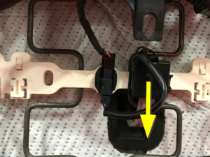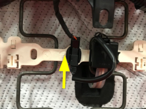 Note1x connector, 1x clip, Slide connector towards front of seat bottom to secure connector to clip