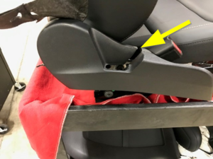 NotePush both inboard and outboard upholstery strap buckles towards each other to release