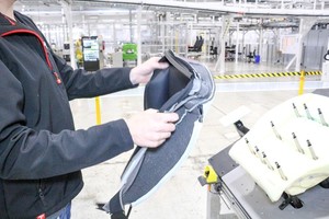 Install seat bottom upholstery trim hog rings to seat cushion foam
