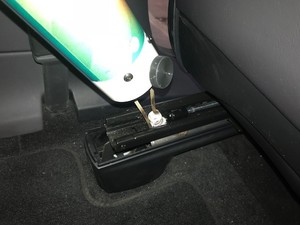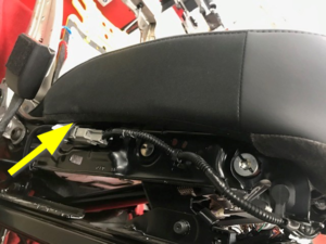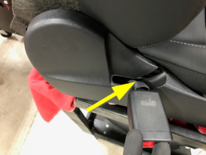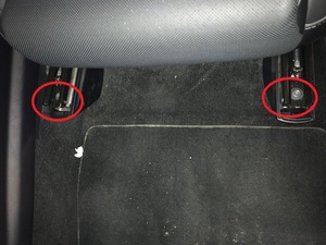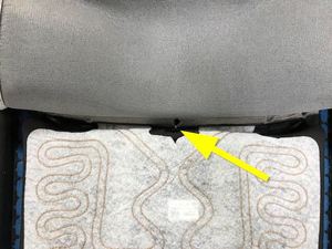 Note1x connector, 1x clip, Slide connector towards back of seat bottom to release connector from clip