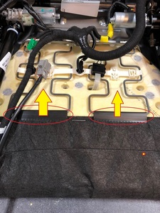 Zip-tie both LH seat back heater and sensor harnesses onto spring mat