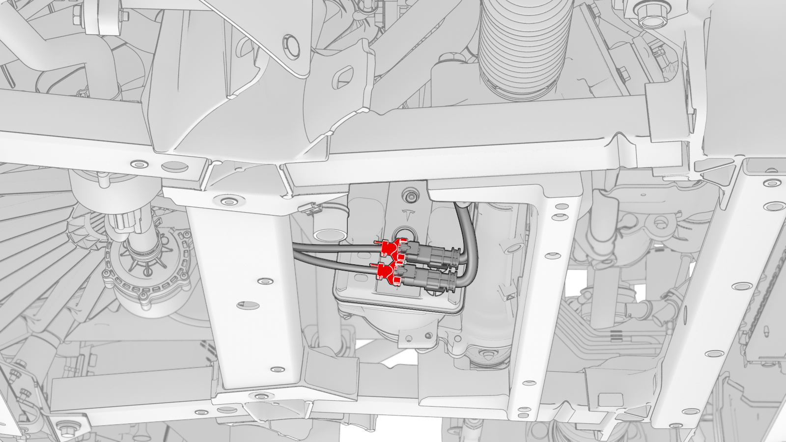 - Remove the fir tree clip that attaches the battery pump 1 pigtail to the front subframe assembly.