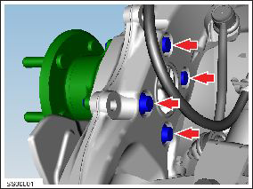 - Release the bolts (x4) that secure the hub to the knuckle (torque 90 Nm).